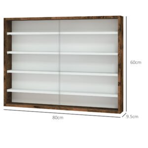 Wall Mounted Display Cabinet with Glass Doors – 5 Tier Wooden Display Unit with Adjustable Shelves for Living Room, Office & Ornaments (60x80cm, Rustic Brown)