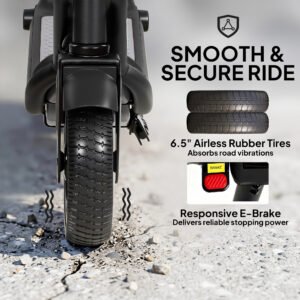 - Ride smoothly with its 6.5″ solid rubber tyres