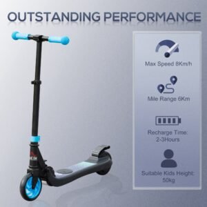 • Power and range: Powered by a 120W rear-wheel motor, this electric scooter reaches up to 8 km/h and covers about 6 km per charge. It delivers steady performance for fun, controlled everyday riding